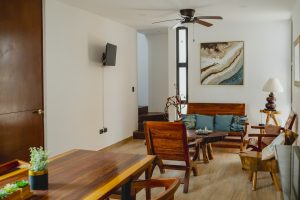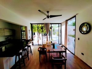 Una encantadora villa en Antálea, número 8 norte, con 3 recámaras, aire acondicionado, baños privados, cocina equipada, Smart TV, Wifi en áreas comunes, y espacio libre de humo. Totalmente amueblada, con balcón en la recámara principal. Incluye electrodomésticos como estufa de inducción, cafetera y lavadora.